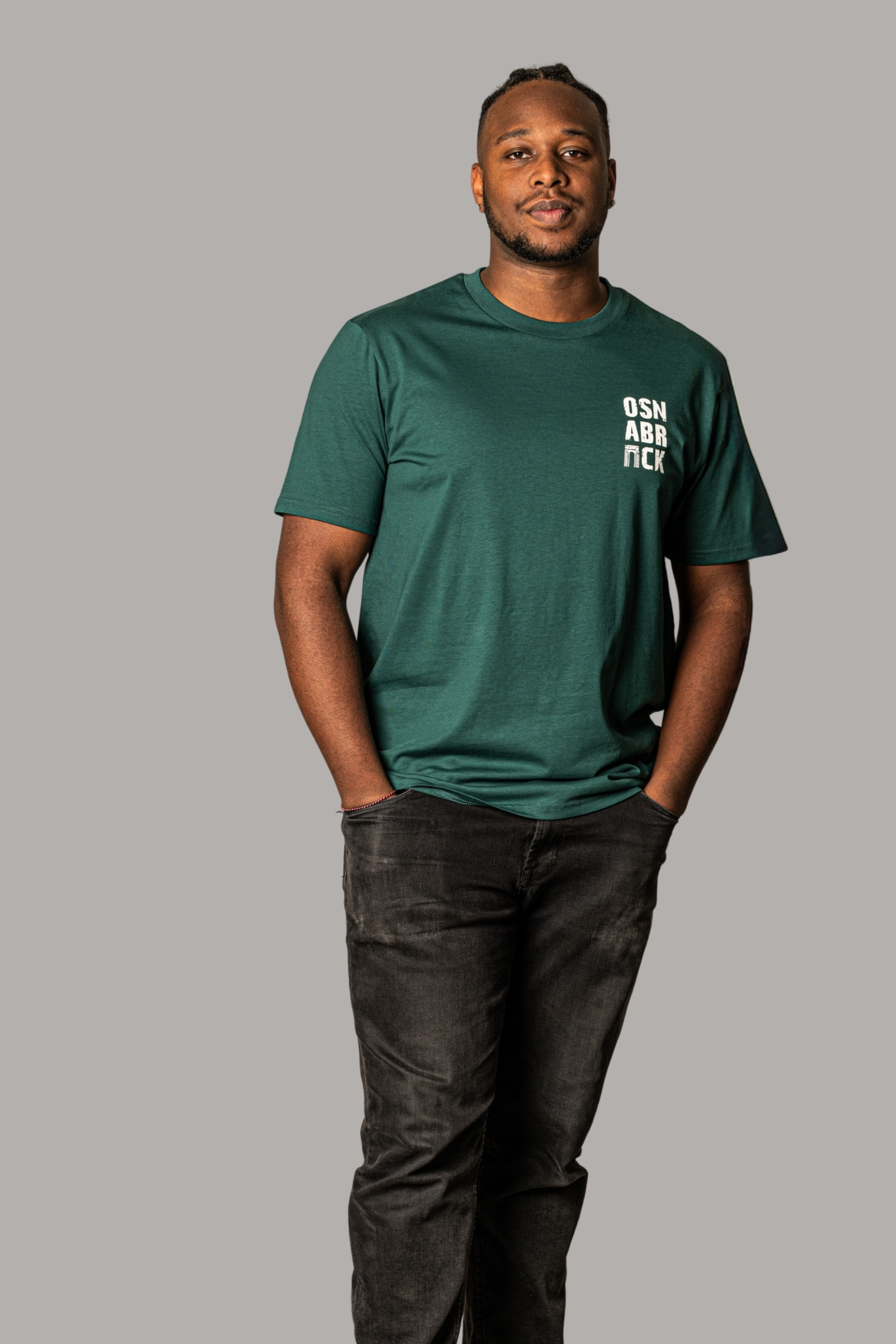 das OSNABRÜCK shirt in waldgrün: ein sattes, tiefes grün wie ein spätsommerlicher waldspaziergang im hüggel oder am rubbenbruchsee. clean & bold – einfach schön.