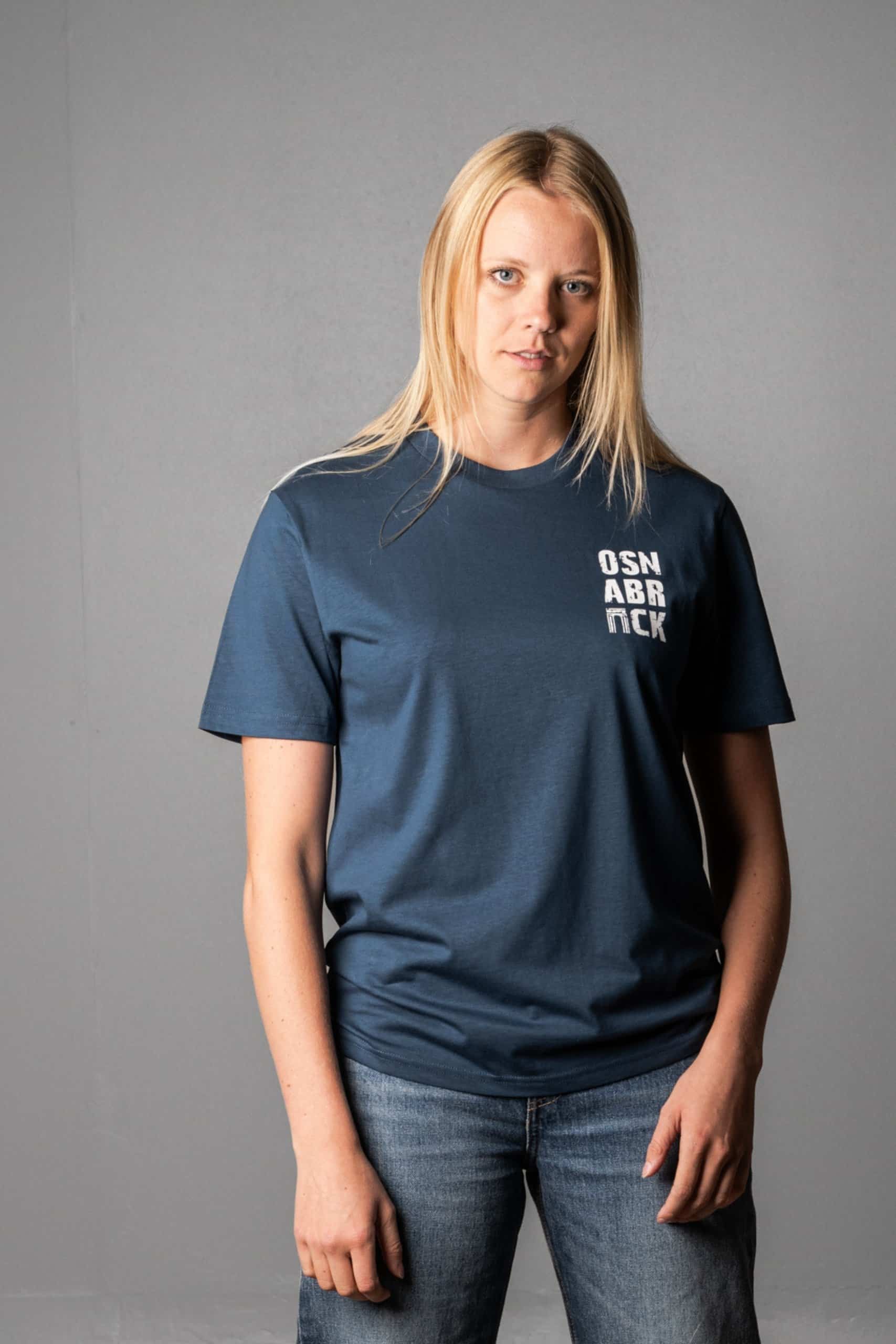 dieses shirt bringt osnabrück vibes pur: das OSNABRÜCK shirt in hafenblau erinnert an den himmel im hafen und sommertage am kanal. der weiße OSNABRÜCK print auf der brust setzt ein klares statement für unsere schöne hasestadt.