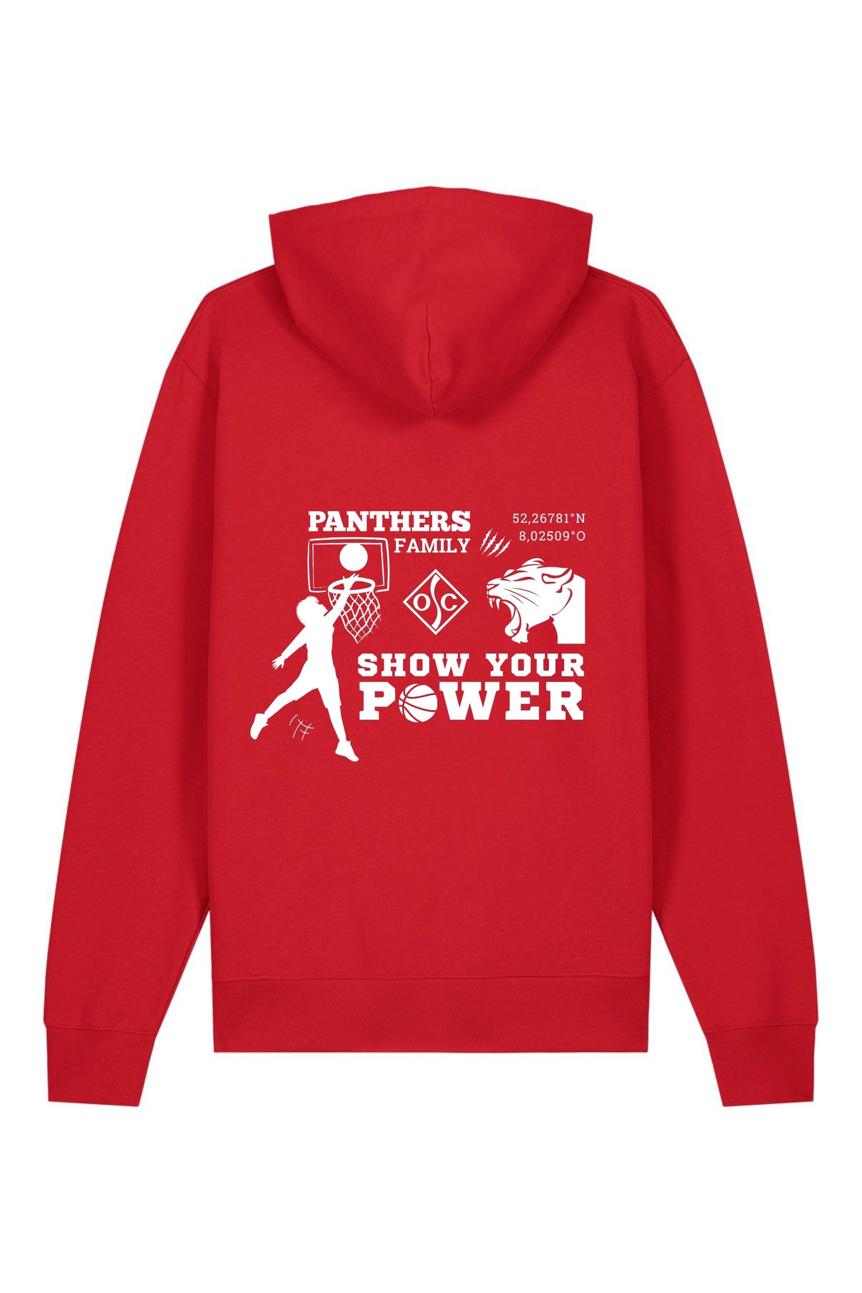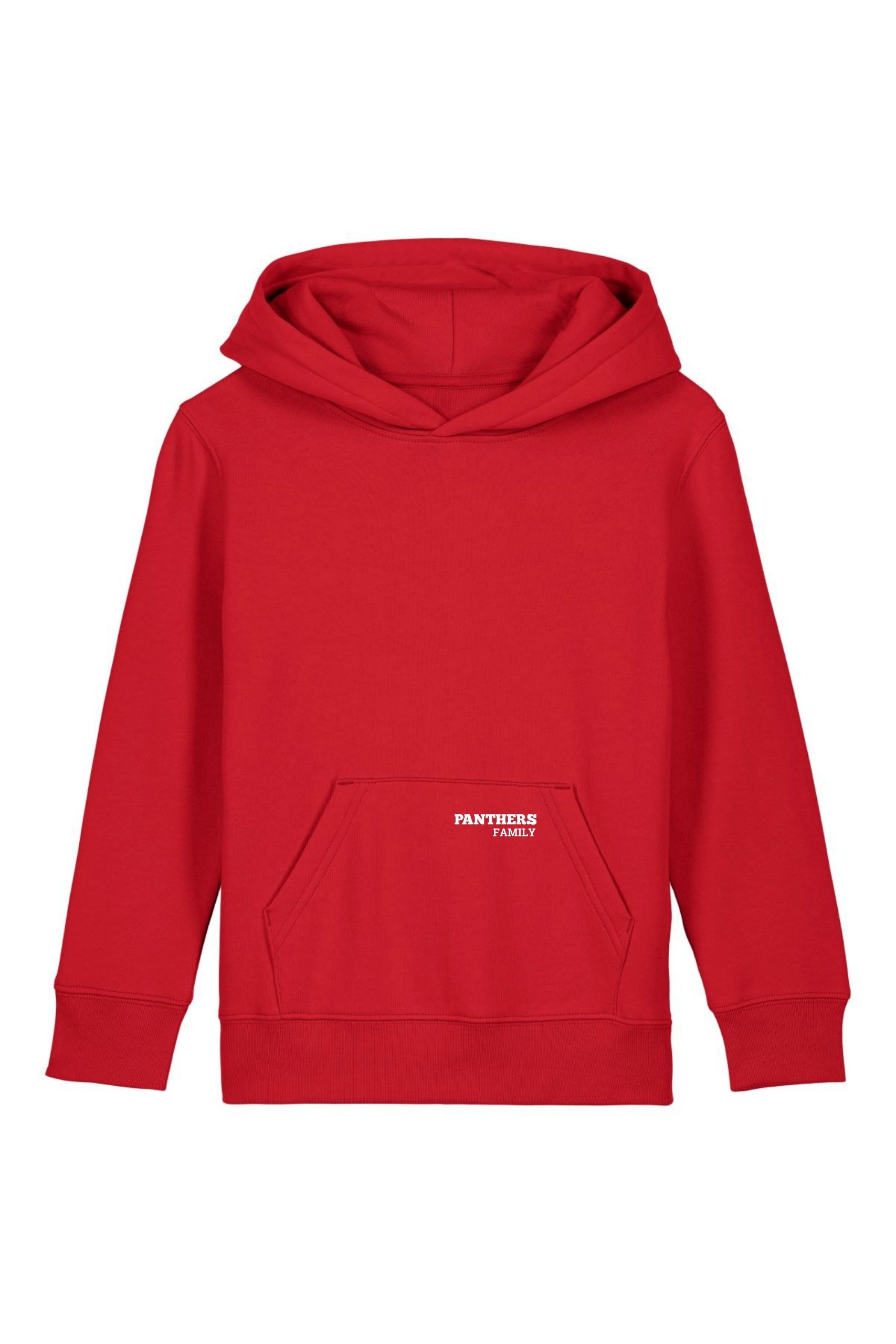 dieser basketball hoodie für kinder bringt den spirit der panthers family auf kindergröße – mit dem detailverliebten „all panthers“ backprint und dem panthers family schriftzug vorn auf der tasche.